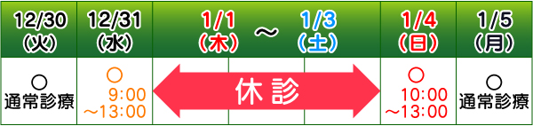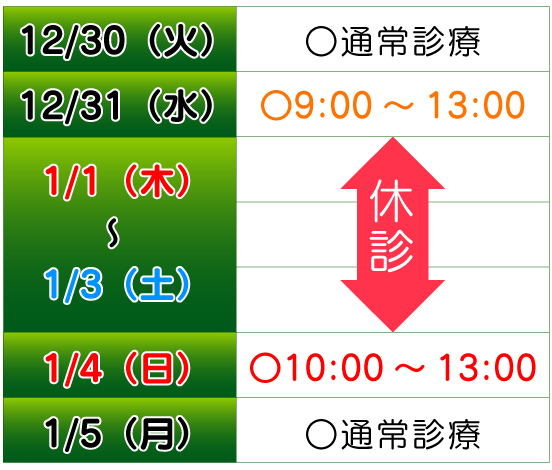 *12月30日(火)は、通常診療(9:30~12:00/15:00~20:00 )となります。
